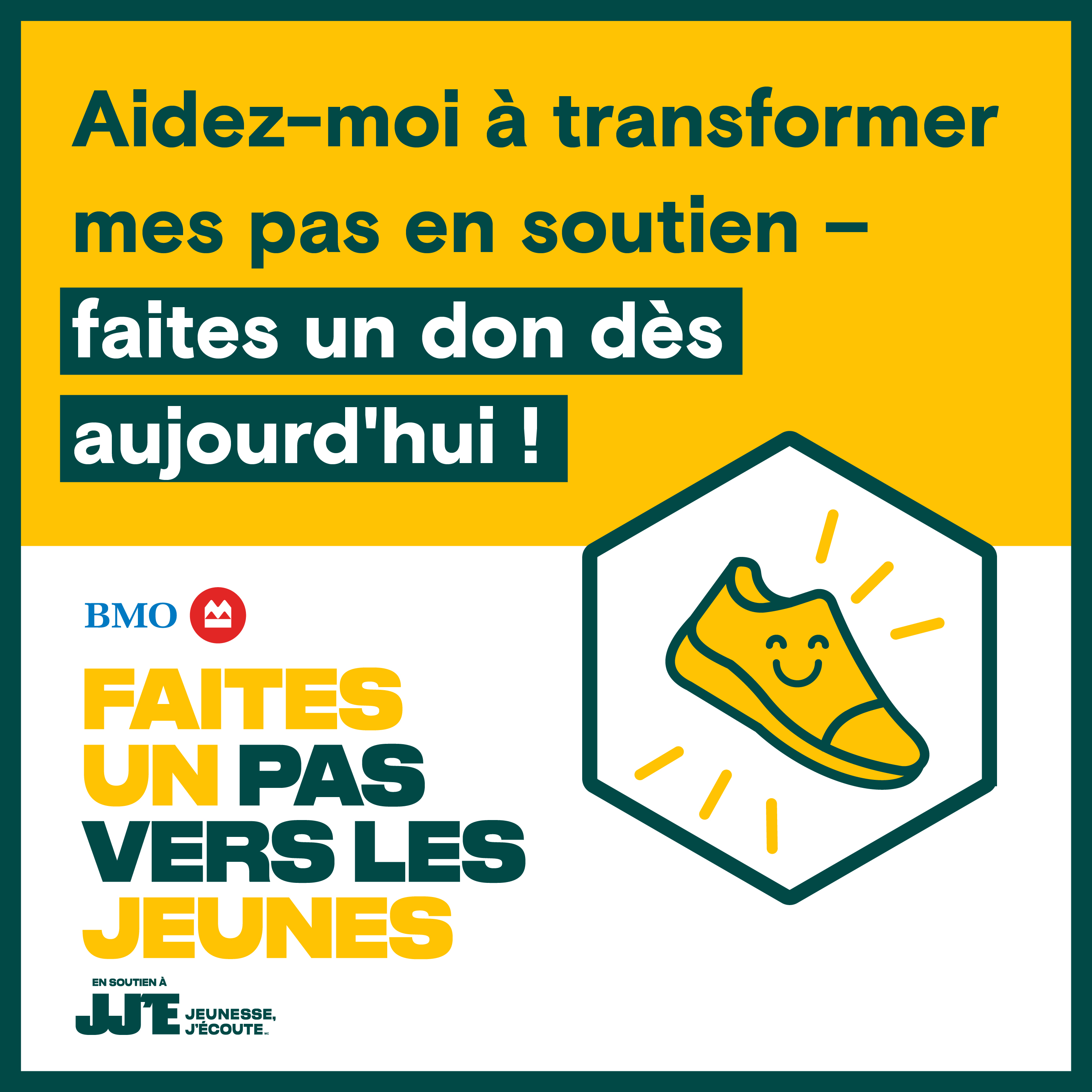 Les participant·e·s admissibles doivent réclamer leur récompense au plus tard le 30 novembre 2026. Les récompenses réclamées après cette date ne pourront pas être honorées. Les récompenses n'ont pas de date d'expiration. Vous pourrez recevoir un reçu fiscal officiel correspondant à la valeur de votre récompense si vous collectez 250 $ ou plus et décidez de redonner votre récompense de collecte de fonds à Jeunesse, J'écoute.